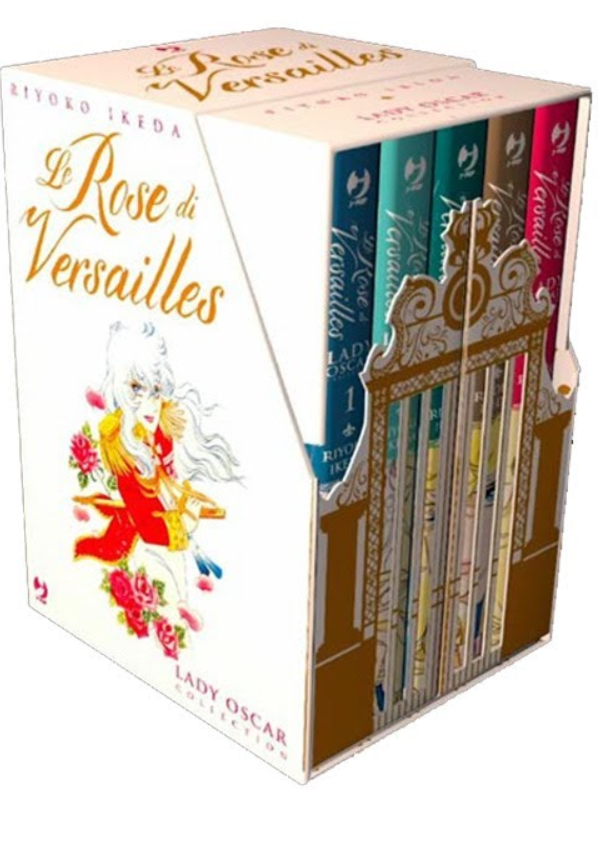 Nel primo cofanetto con i volumi dall'1 al 5, in grande formato (15x21 cm), ognuno con tutte le pagine a colori previste in originale e gallery delle illustrazioni uscite all'epoca della prima serializzazione su rivista. Il tutto raccolto in un cofanetto di lusso che riproduce il cancello di Versailles. All'interno troverete anche un esclusivo libretto contenente tutti i frontespizi dell'edizione originale e la paper doll di Lady Oscar!